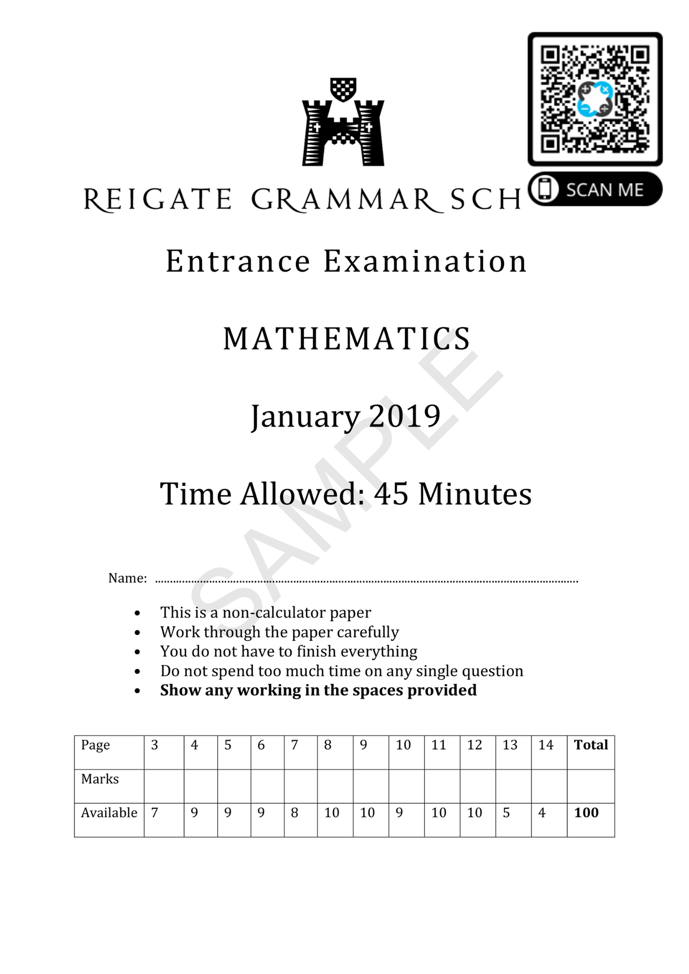 Reigate Grammar School 11 Plus Visit their website 11 Plus 13 Plus PT Entrance Examination Mathematics Question Paper Answer Paper 11 Plus Entrance Examination Mathematics 2022 Question Paper Answer Paper 11 Plus Entrance Examination Mathematics 2021 Question Paper Answer Paper 11 Plus Entrance Examination Mathematics 2020 Question Paper Answer Paper 11Plus Maths Entrance Exam Paper 2019 Question Paper Answer Paper Quiz Entrance Examination Mathematics January 2018 Question Paper Answer Paper Quiz Entrance Examination Mathematics January 2017 Question Paper Answer Paper Entrance Examination Mathematics January 2015 Question Paper Answer Paper Entrance Examination Mathematics January 2014 Question Paper Answer Paper Entrance Examination Mathematics January 2013 Question Paper Answer Paper Entrance Examination Mathematics January 2012 Question Paper Answer Paper